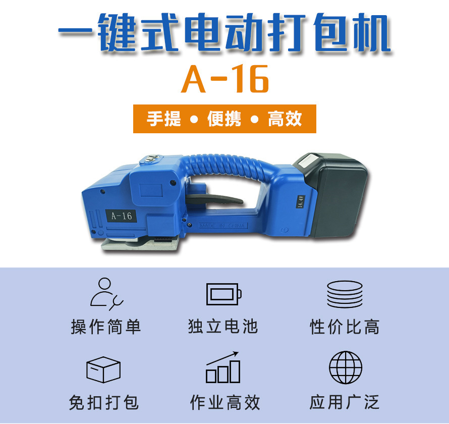 - 體積小、重量輕,便于攜帶到各種工作場所。無論是在倉庫的貨架旁、運輸車輛內還是在戶外的臨時包裝點,都可以輕松使用。工作效率較高,對于小批量或臨時的打包任務,能夠快速完成打包操作。例如,在活動現場對禮品盒或宣傳資料進行打包時,手持打包機可以迅速投入使用。