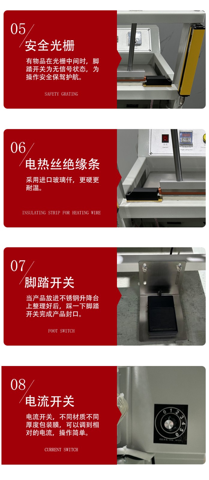 - 檢查部件:檢查設(shè)備的各個(gè)部件是否有松動(dòng)、磨損或損壞的跡象。特別是封口刀、切角刀、傳動(dòng)鏈條、皮帶等關(guān)鍵部件,如有問題及時(shí)緊固或更換。同時(shí),檢查氣動(dòng)元件的連接是否緊密,有無漏氣現(xiàn)象。