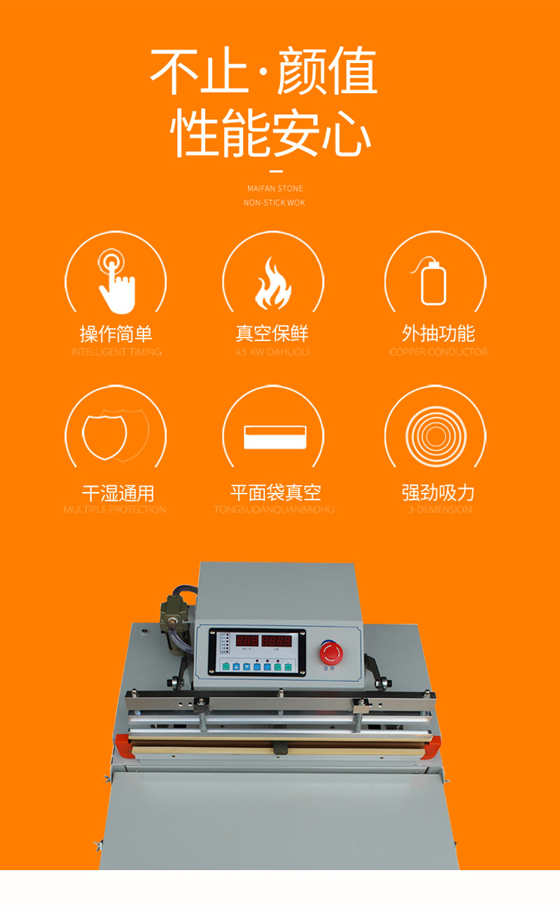 此外,臺式電動外抽真空包裝機還具備以下特點: