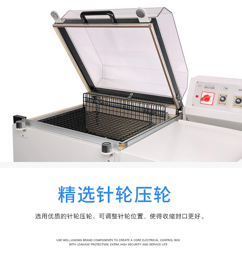 它的工作流程通常為:首先通過封口裝置對包裝材料進行密封,接著利用切割裝置精準切割多余的包裝材料,最后借助熱收縮功能,使包裝材料緊密貼合在被包裝物品上,從而達到美觀、防塵、防潮以及保護產品的目的。