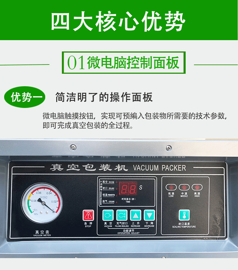 - 無論是干燥的顆粒狀食品,如大米、豆類,還是含有較多水分的食品,如泡菜、鹵制品,都能進行有效的真空包裝。