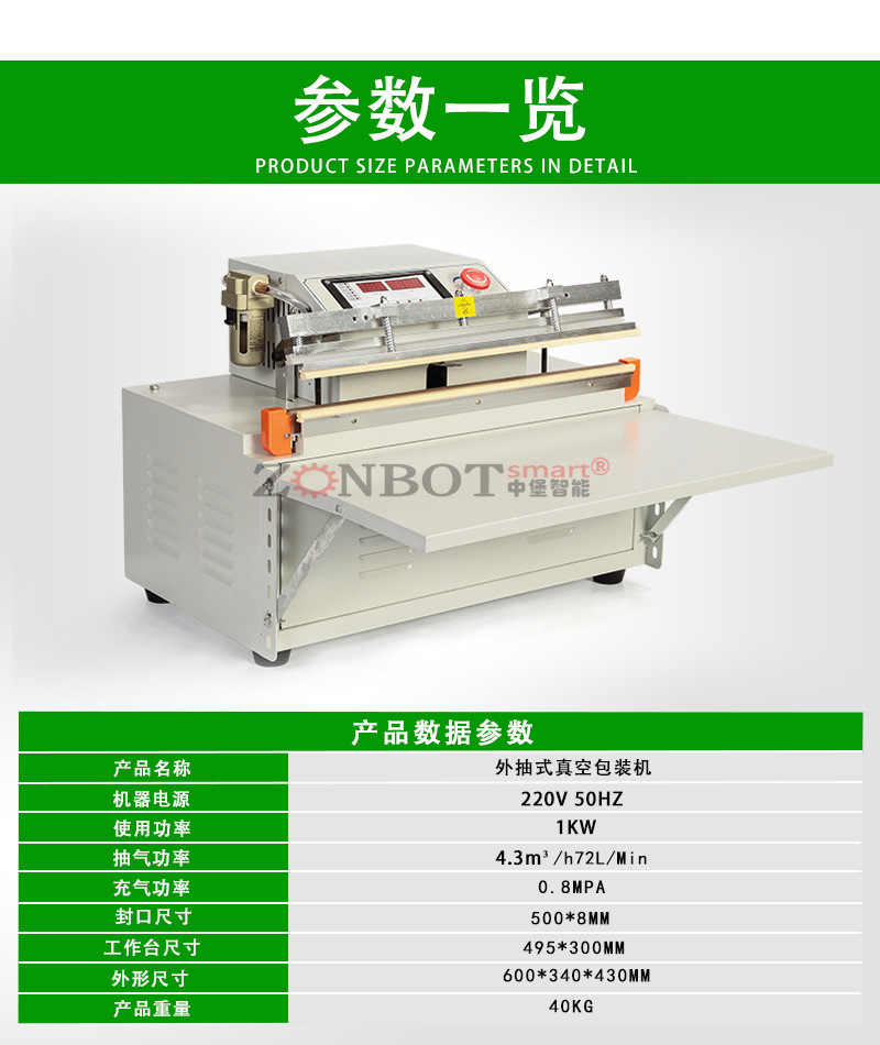 臺式外抽真空包裝機通過真空泵將包裝袋內的空氣抽出,形成真空環境,然后進行熱封或冷封操作,以達到密封包裝的目的。其工作過程通常包括以下幾個步驟: