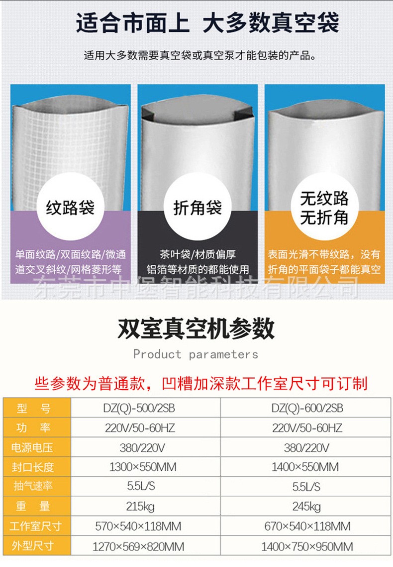 - 市場品牌:目前市場上有眾多品牌的凹糟加深款雙室真空包裝機,如上海眾派、上海童緣、諸城市利順機械廠等。這些品牌的產品在質量、性能、售后服務等方面各有優勢,消費者可以根據自己的需求和預算進行選擇。