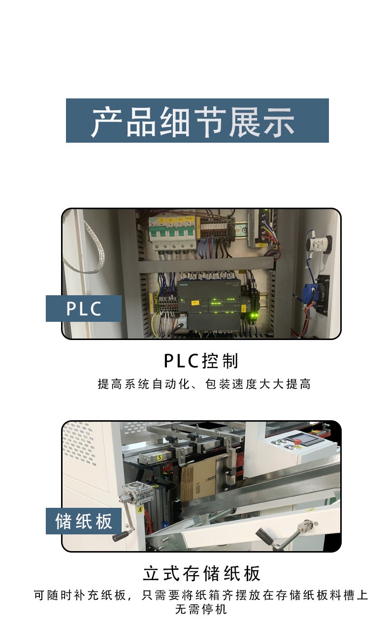 高效自動化:可大大提高生產效率,減少人工操作,節省時間和人力成本。例如,高速自動開箱封底機每小時可處理幾百甚至上千個紙箱 。 操作精準:準確的感應和定位系統能夠確保箱子的準確開啟和封閉,保證每個紙箱的形狀和封底質量都符合標準,避免漏貼和錯位等問題 。 智能調節:智能控制系統可根據不同箱子尺寸進行自動調節,適用范圍廣,能處理各種規格的紙箱 。 安全可靠:避免了人工開箱可能帶來的安全風險,如刀具劃傷等,同時設備配備了多重安全保護裝置,保障操作人員和設備的安全 。 易于操作維護:設計人性化,操作簡單方便,非專業
