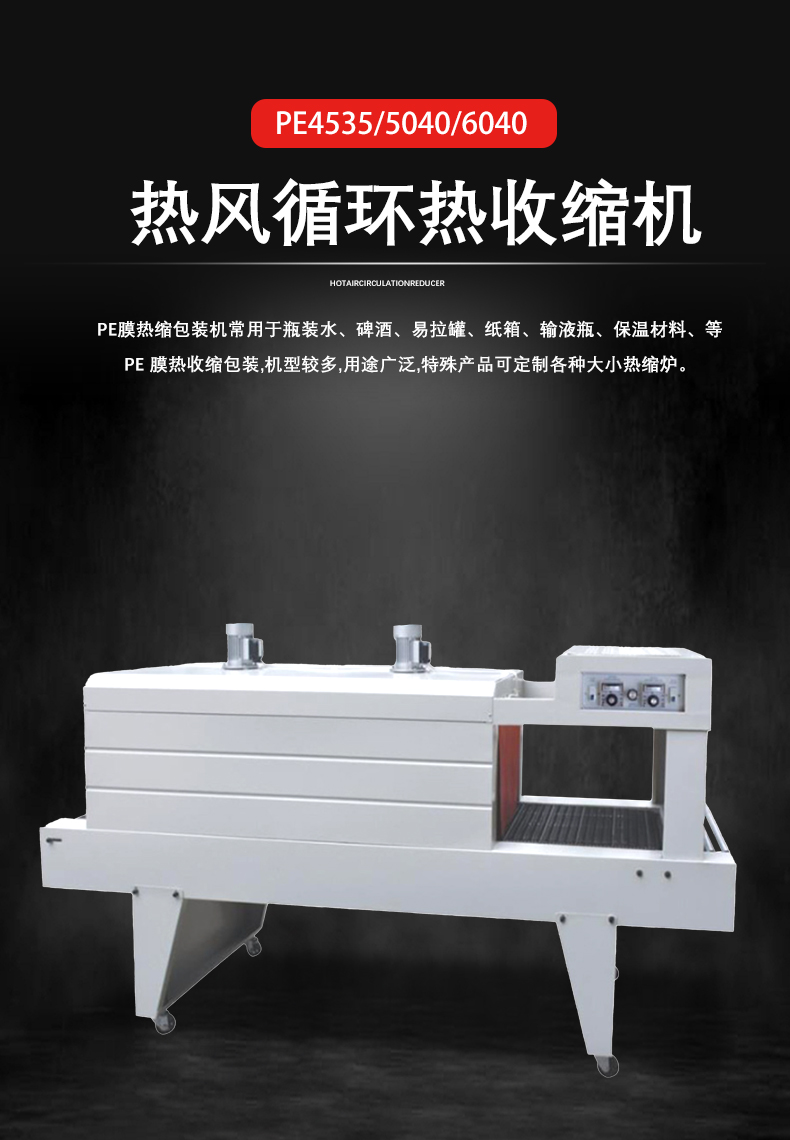 加熱原理:機器內(nèi)部的加熱裝置(通常是加熱管)會將空氣加熱。當(dāng) PE 薄膜包裹產(chǎn)品并進入加熱區(qū)域后,熱空氣使薄膜分子獲得能量。PE 薄膜分子鏈在熱能作用下開始運動,分子間的距離縮小,進而產(chǎn)生收縮現(xiàn)象。一般來說,PE 薄膜的收縮溫度在