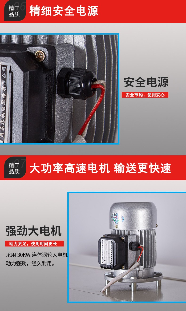 噴氣系統(tǒng):通過風(fēng)機和噴氣嘴將熱空氣均勻地噴射到 PE 薄膜上。風(fēng)機提供強大的氣流動力,噴氣嘴的設(shè)計則保證熱空氣能夠全方位地覆蓋薄膜,使薄膜受熱均勻。噴氣嘴的形狀和數(shù)量會根據(jù)機器的規(guī)格和用途有所不同,有些機器的噴氣嘴是環(huán)形分布的,以確保產(chǎn)品各個方向都能受到熱空氣的作用。