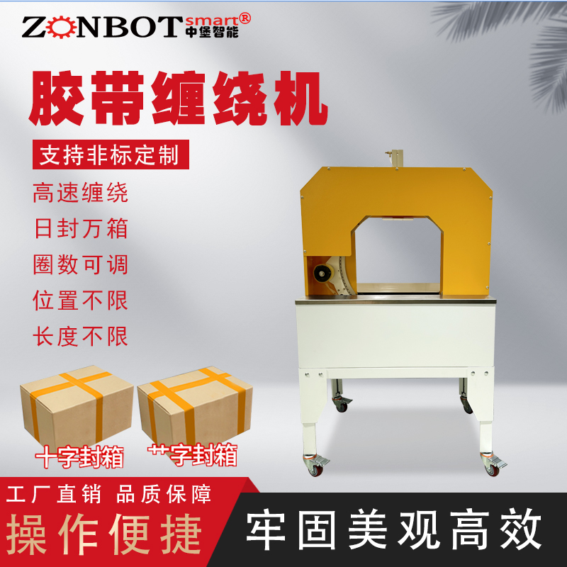 膠帶纏繞機是一種用于將膠帶自動纏繞在產品或包裝上的設備。它的主要功能是通過機械裝置控制膠帶的釋放和纏繞動作,從而高效、均勻地將膠帶包裹在目標物體的表面,起到固定、密封、保護或標識等作用。例如,在物流行業,它可以對紙箱進行纏繞,增強紙箱的牢固程度,防止在運輸過程中散開;在生產車間,可對一些零部件進行纏繞,起到防護作用。