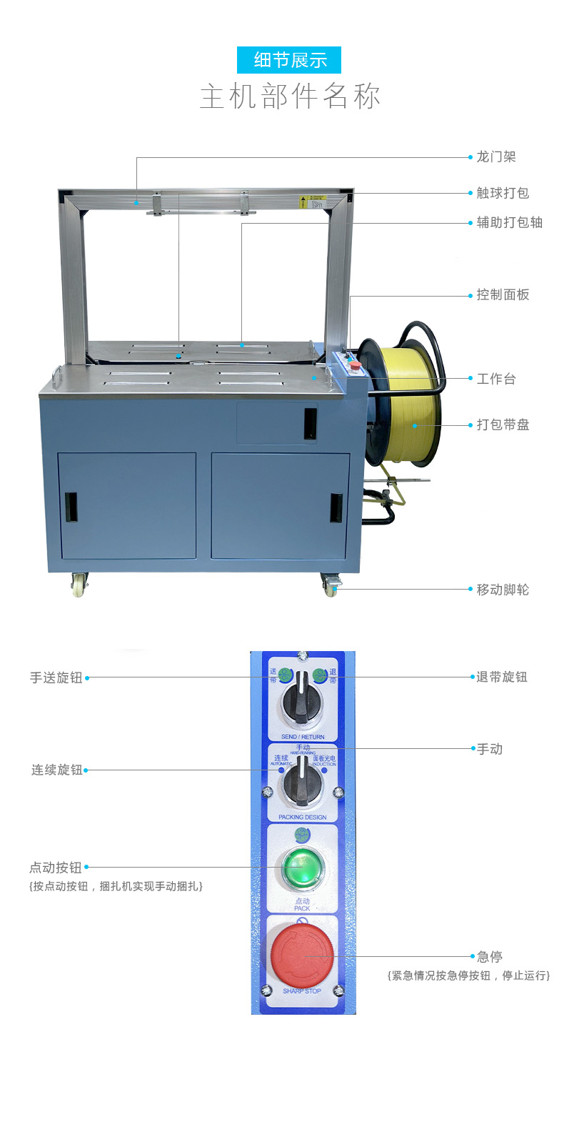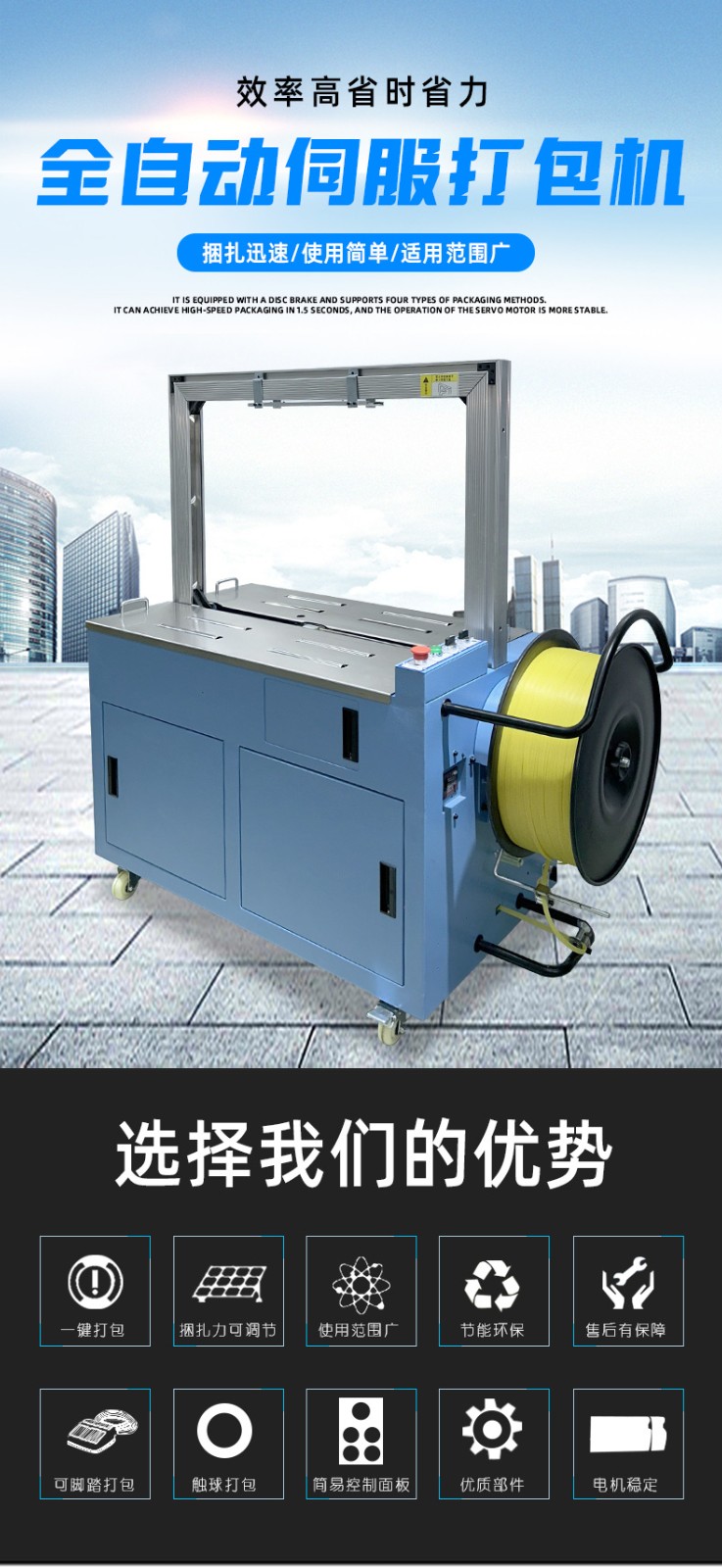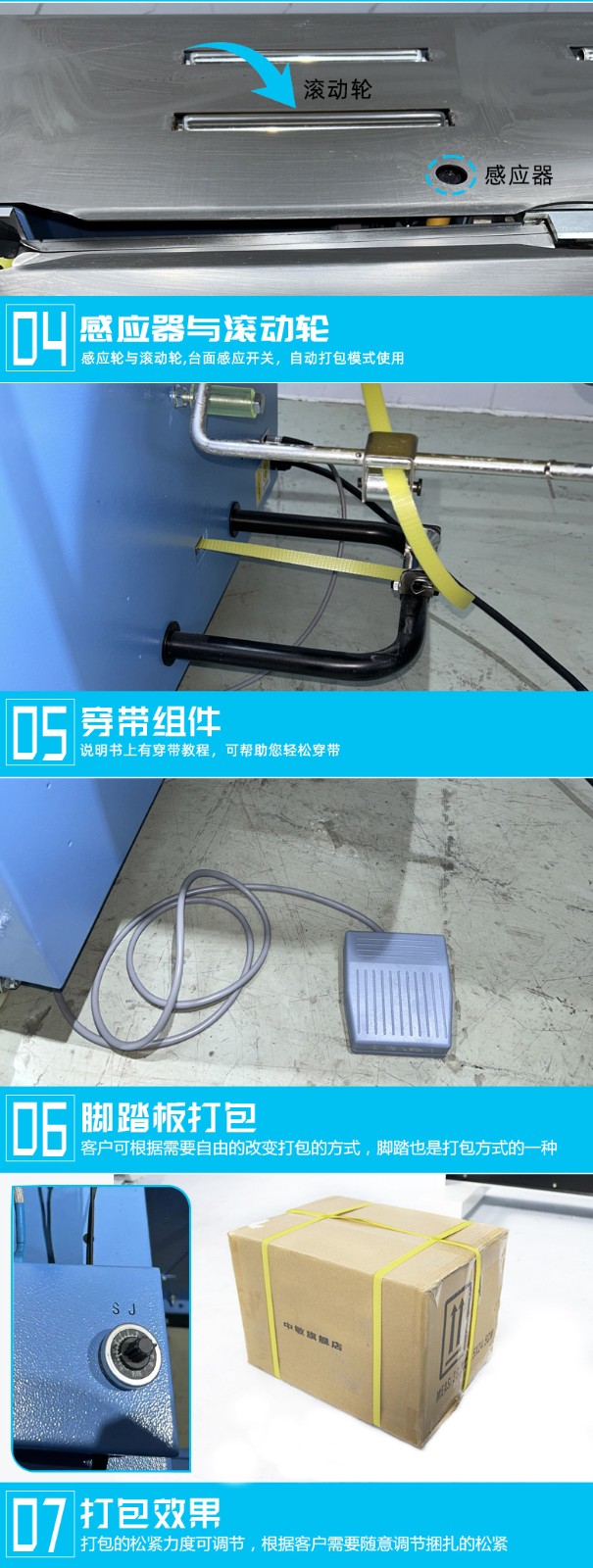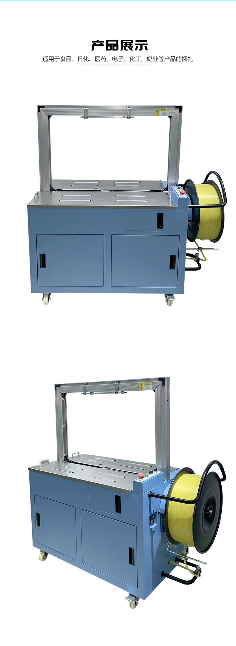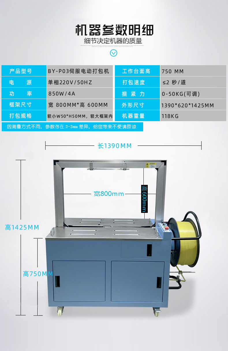 結(jié)構(gòu)組成 伺服電機(jī):作為核心部件,相比傳統(tǒng)電機(jī),它能實(shí)現(xiàn)更高的控制精度和響應(yīng)速度,可在捆扎時(shí)精準(zhǔn)調(diào)整捆扎帶張力,保障捆扎的緊密與均勻。 控制系統(tǒng):負(fù)責(zé)智能化管理整個(gè)捆扎流程。通過傳感器與程序控制,實(shí)時(shí)監(jiān)測(cè)并調(diào)整捆扎速度、張力等參數(shù),用戶還能依不同產(chǎn)品需求設(shè)定相應(yīng)捆扎參數(shù),滿足多樣化包裝需求。 捆扎裝置:一般采用熱合或熱熔方式固定捆扎帶。熱合是通過加熱使捆扎帶兩端熔合,形成牢固的捆扎效果,提高捆扎強(qiáng)度,防止運(yùn)輸過程中松脫。 輸送系統(tǒng):負(fù)責(zé)將待捆扎產(chǎn)品送入捆扎機(jī),常與輸送帶或自動(dòng)化生產(chǎn)線等其他生產(chǎn)設(shè)備聯(lián)動(dòng),形