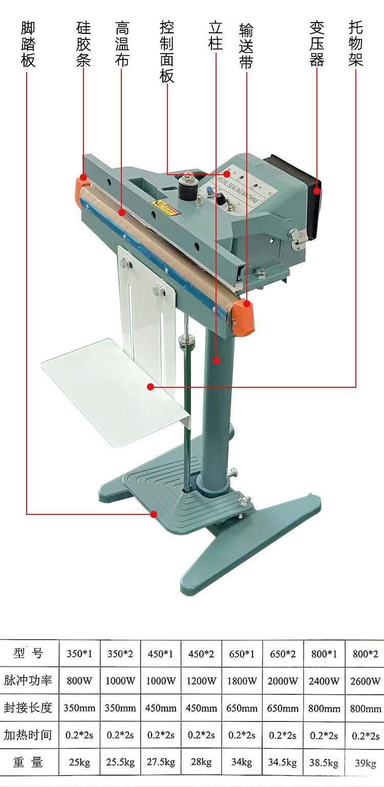 ZB-SF450鋁架腳踏封口機 食品袋塑料袋大功率變壓器寬邊封口包裝機械