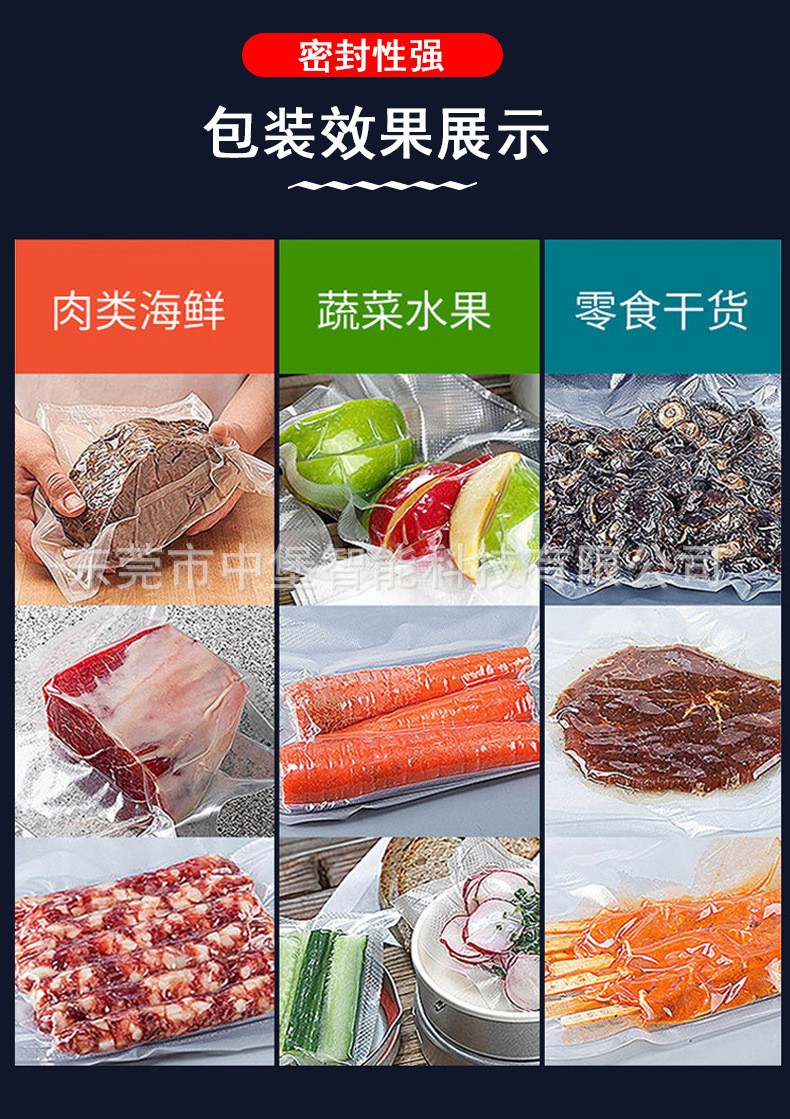 真空包裝機能夠自動抽出包裝袋內的空氣,達到預定真空度后完成封口工序。亦可再充入氮氣或其它混合氣體,然后完成封口工序。真空包裝機常被用于食品行業,因為經過真空包裝以后,食品能夠抗氧化,從而達到長期保存的目的。