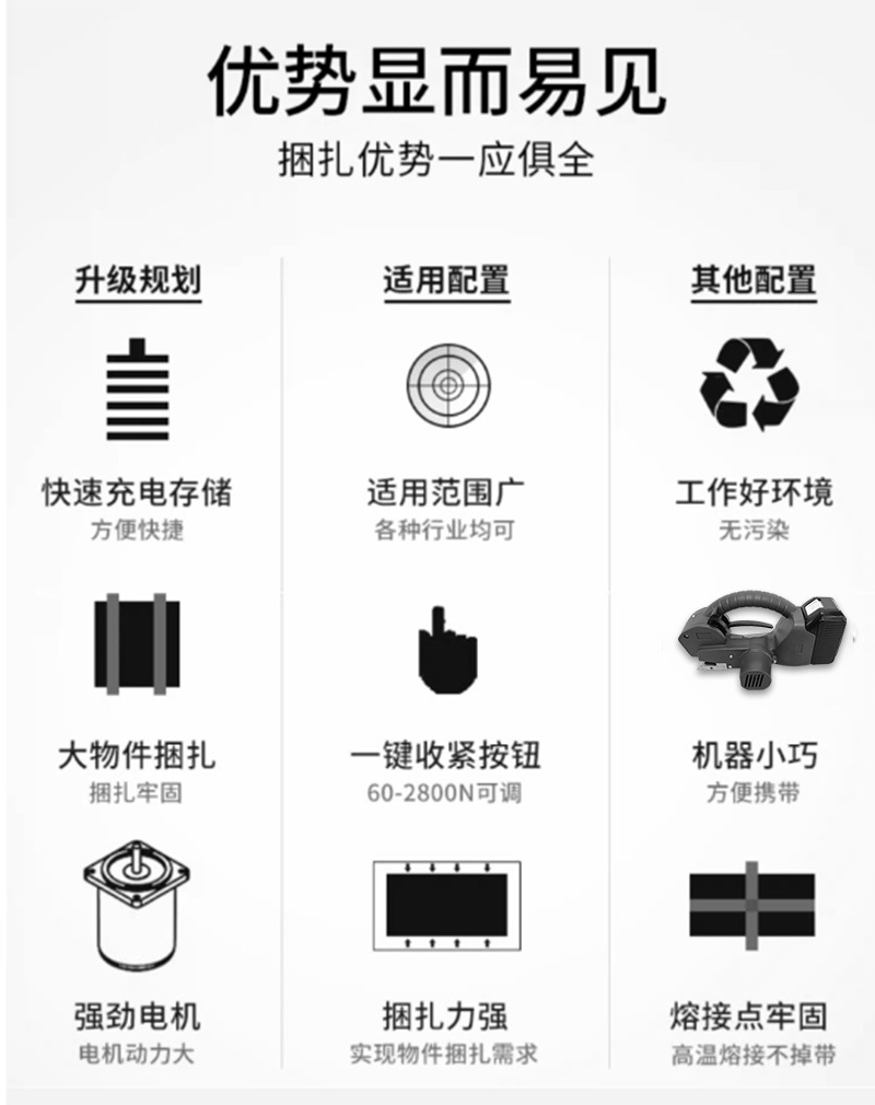 手搖式免扣打包機是一種便捷的包裝設備,主要用于物品的捆扎和打包。它采用免扣設計,無需使用額外的扣件,即可實現包裝帶的緊密連接,從而提高打包效率并降包裝成本