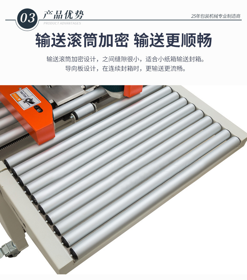 封箱機,也稱為Case sealer machine,主要用于紙箱的封箱包裝。它們不僅適用于單機作業,也可以與流水線配套使用,是包裝流水線作業中不可或缺的設備。封箱機的功能包括自動折疊、粘合和封口紙箱,通過先進的感應和控制技術,能夠自動檢測和調整紙箱尺寸,按照設計要求進行折疊和封口操作,大大提高了包裝的效率和一致性,減少了人工操作的錯誤和勞動強度。