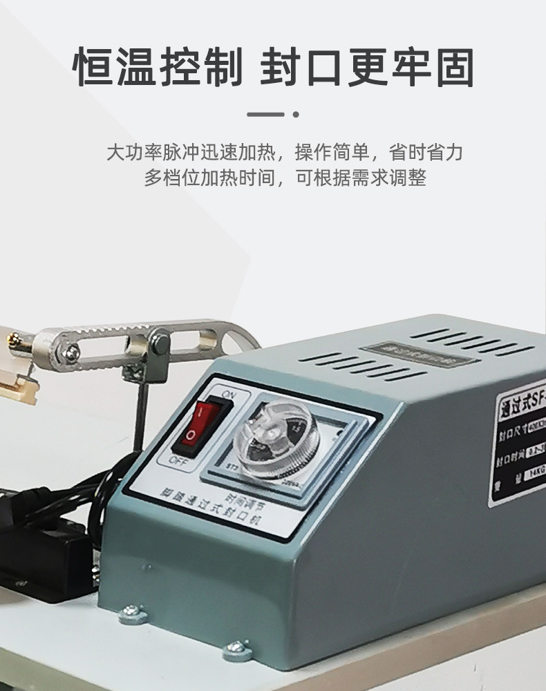 腳踏封口機適用于各種塑料薄膜、?復合薄膜及鋁塑薄膜的封合。?這種封口機因其高效、?簡單操作和廣泛的應(yīng)用領(lǐng)域,?被廣泛應(yīng)用于食品、?醫(yī)藥、?五金等多個行業(yè)。?
