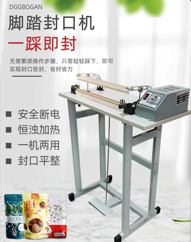 腳踏封口機是根據(jù)國內(nèi)外先進的機型基礎(chǔ)上,重新設(shè)計制造而成,適用于所有塑料袋薄膜封口及制袋,是食品廠,化妝品廠,藥廠等單位的理想封口設(shè)備。