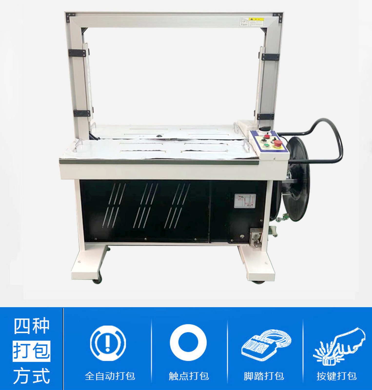 其工作原理通常是通過傳感器檢測物品位置,然后自動啟動打包程序,使用打包帶或其他材料對物品進行緊固。